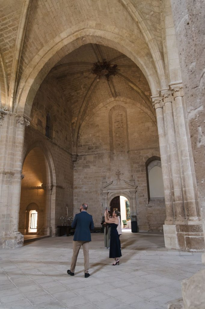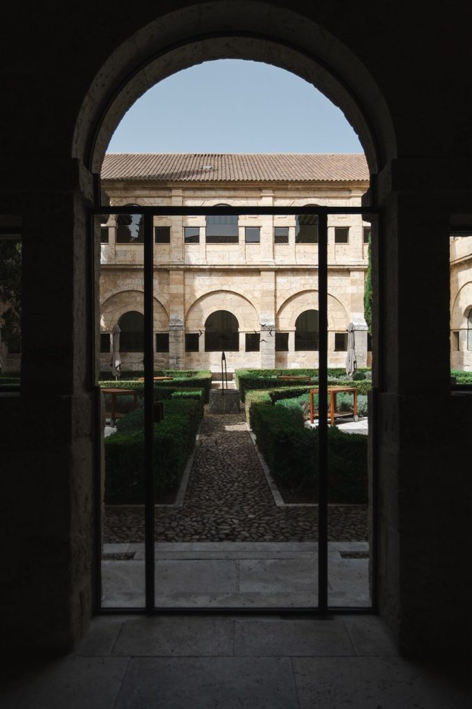 Hotel de lujo durante la visita Abadía Retuerta, un monasterio del siglo XII transformado en una experiencia exclusiva en la Ribera del Duero, España.